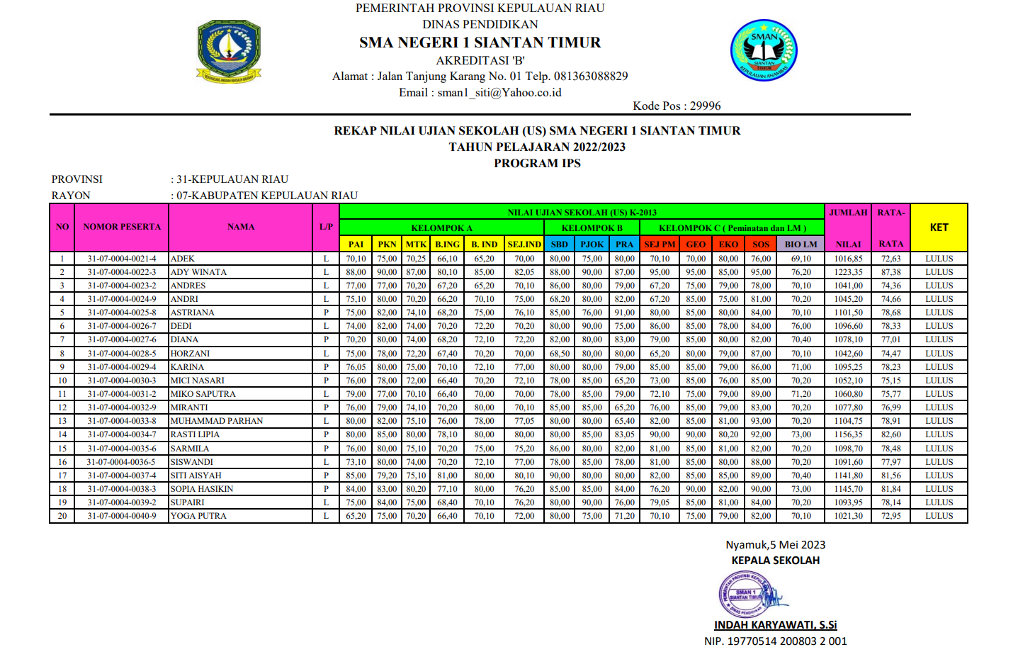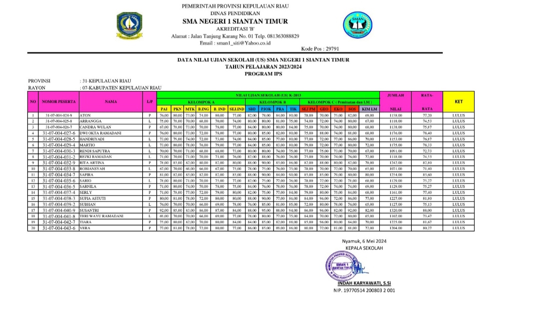 PENGUMUMAN KELULUSAN SISWA SMAN 1 SIANTAN TIMUR IPS